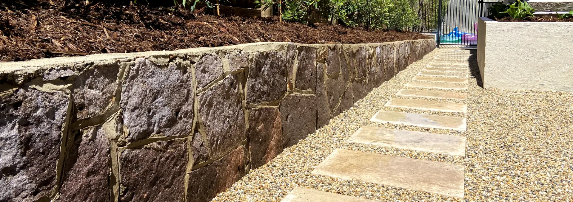 We simplified the side access to the pool area at this property in Ascot. Initially, it was overgrown with outdated paving. Our team installed Classic Travertine stepping stones, surrounded by 10mm Nambucca Heads pebbles, and the paved area is contained with Shapescaper Corten steel edging. The planting was simple but elegant, featuring Elaeocarpus reticulatus (Blueberry Ash) along the boundary line and Zantedeschia aethiopica (Arum Lilies) along the window sill.